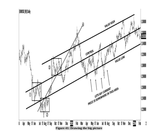 • 만약 하락 추세라면, 통제 아래에 있어야 할 거래 활동이 더 많습니까? 만약 상승 추세라면, 통제 이상의 거래 활동이 있어야 할 가치의 상위 부분에 있습니까? 최근의 가격 행동이 현재의 가격으로 이어지는 것을 보고 판단하세요.