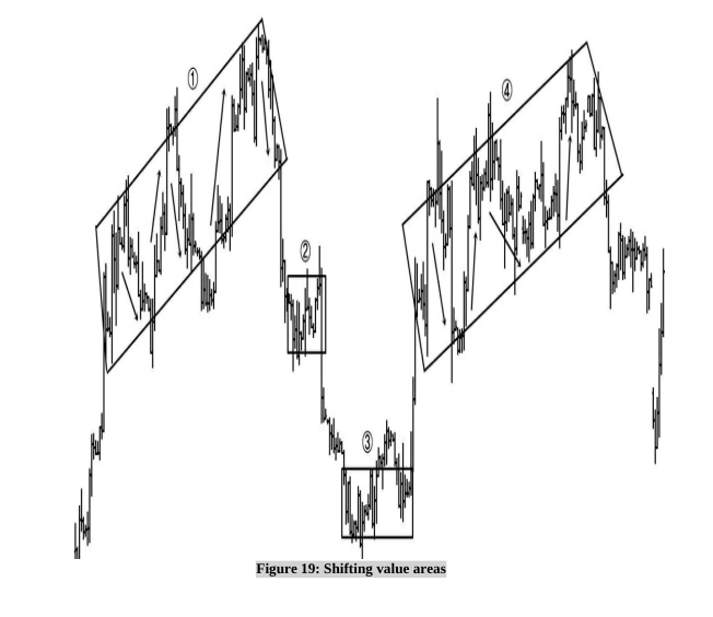 다시 연습할 시간이에요. 가치가 어떻게 움직이는지에 익숙해지도록 노력하세요. 차트를 분석하고 수평 가치에서 수행한 것처럼 표시합니다. 가격이 또 다른 작은 가치 옆에 작은 가치를 반복적으로 만드는 비교적 빽빽한 영역을 찾으세요. 이 영역은 가치를 분리하는 강력한 움직임 없이 가격 활동의 단일 블록처럼 보여야 합니다. 수평 가치와 마찬가지로 매우 정밀할 필요가 없습니다. 대부분의 거래가 이루어졌다는 것을 알 수 있는 지역을 포함시켜보세요. 초과 가격도 확인하시고요.